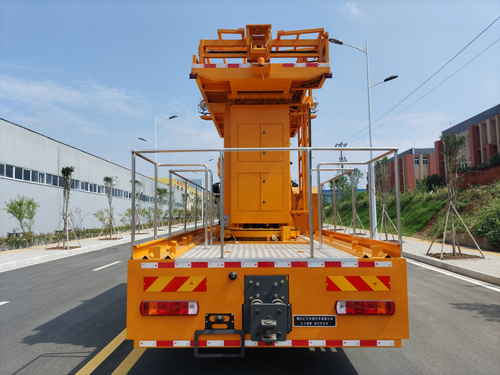 仅选用底盘轴距4600+1350mm;首要专用设备为升降渠道,用于线路修理及保养。升降渠道上设备的照明灯,警示灯均仅在车辆作业状态下运用;侧后防护设备资料原料:Q235,侧防护为整体式防护结构,后防护选用螺栓衔接,截面尺度120×120mm,下边际离地高435mm。随底盘选装限速设备,限速89km/h;ABS体系控制器出产企业/型号为威伯科(上海)办理有限公司/4460046300。