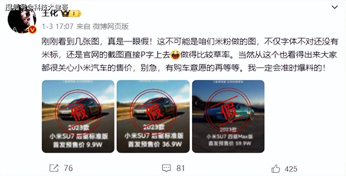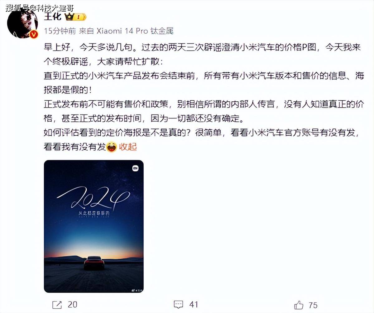 怎么评价看到的定价海报是不是真的?很简单,看看小米轿车官方账号有没有发,看看我有没有发。