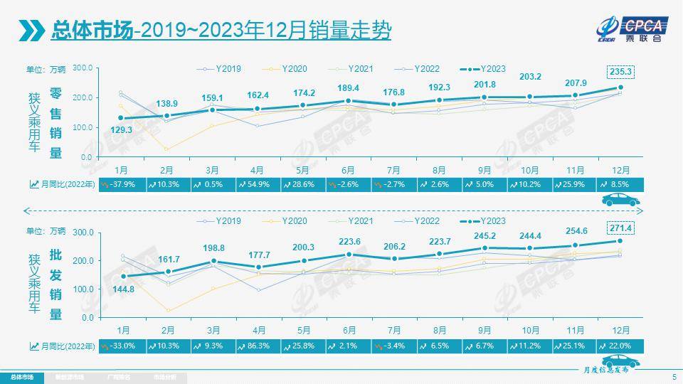 从2023年全年销售情况去看,2023年全年乘用车市场累计零售销量为2169.9万辆,同比增长5.6%。